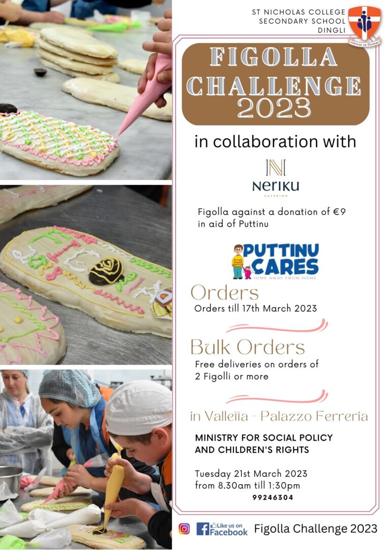 “It all started in the scholastic year 2011/2012 when a group of motivated teachers, LSE’s and school management team ventured on this charitable journey of the Figolla Challenge. The aim of this challenge was to enhance solidarity in our students and helping out NGOs mainly those that help people, especially children, during difficult times in their lives. We donated money to Malta Community Chest Fund, Malta Hospice Movement and to Puttinu Cares.